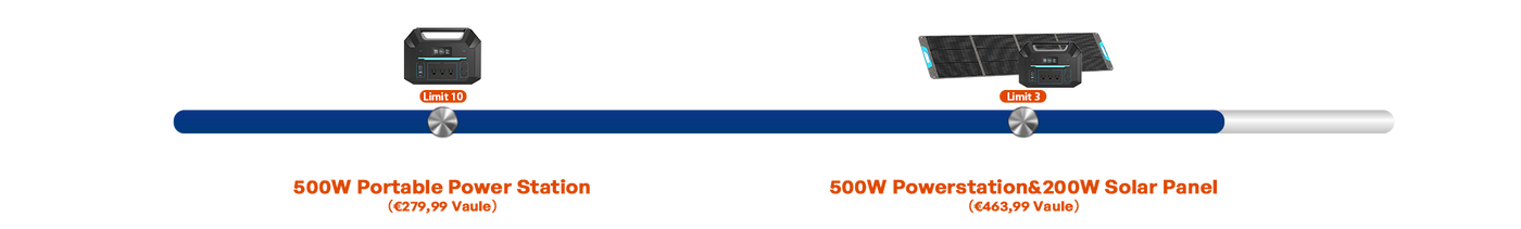 Orders of €3500 or more receive a Free 200W Portable Panel& 500W Powerstation(€463,99 Vaule), limited 3.