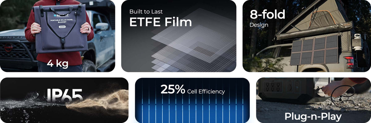 200W/400W solar panel blanket can charge batteries (solar charge controllers are required) and portable power stations. Just ensure the open circuit voltage of the solar panel does not exceed the maximum DC input voltage of any connected power stations or solar charge controllers.