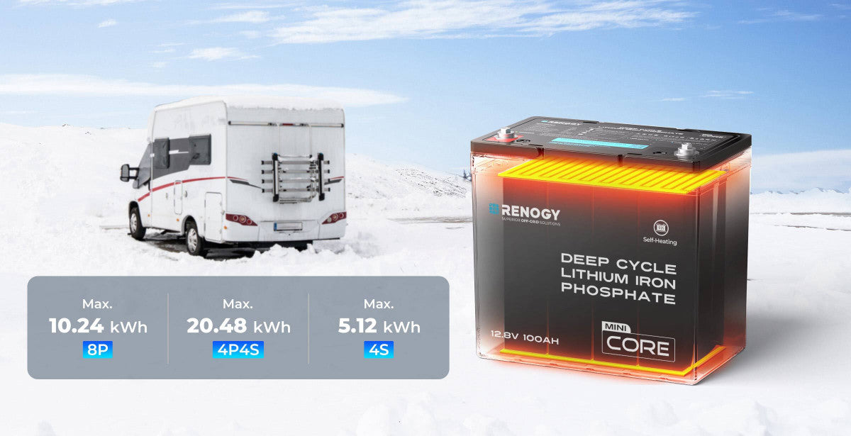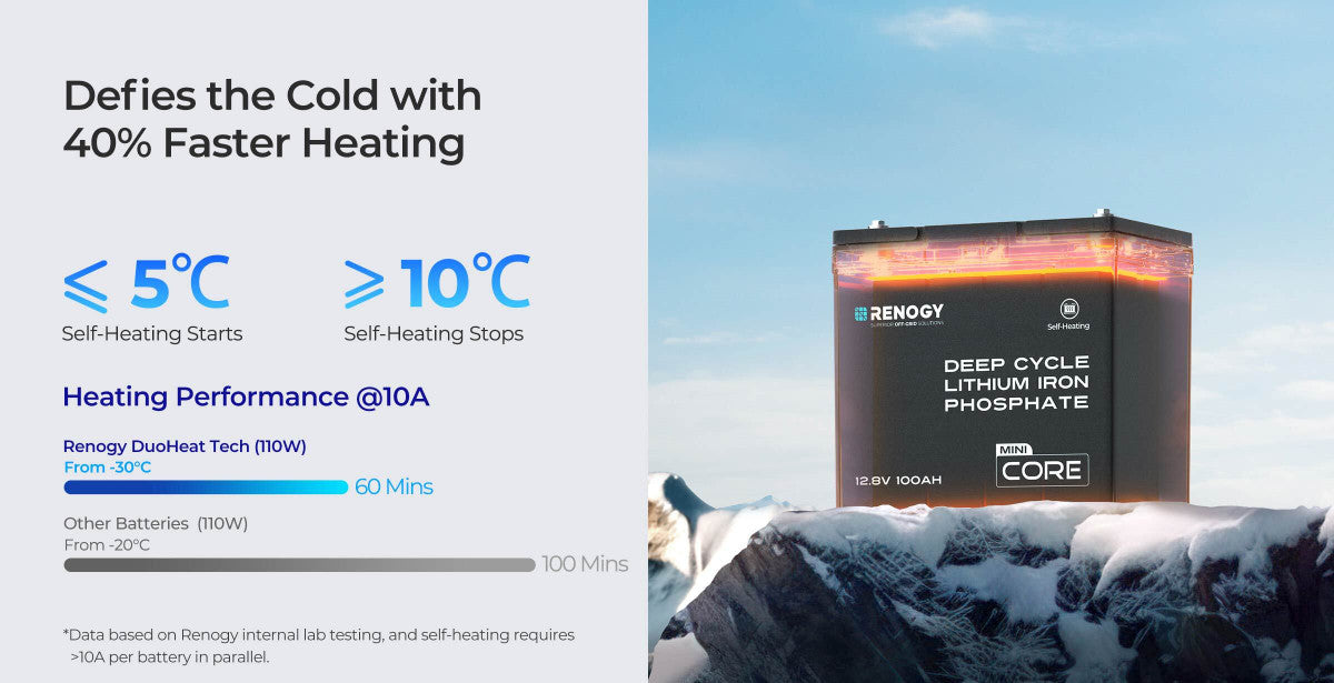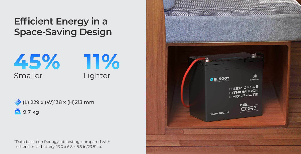 Renogy Core Mini 12V 100Ah LiFePO4 Battery with DuoHeat Tech