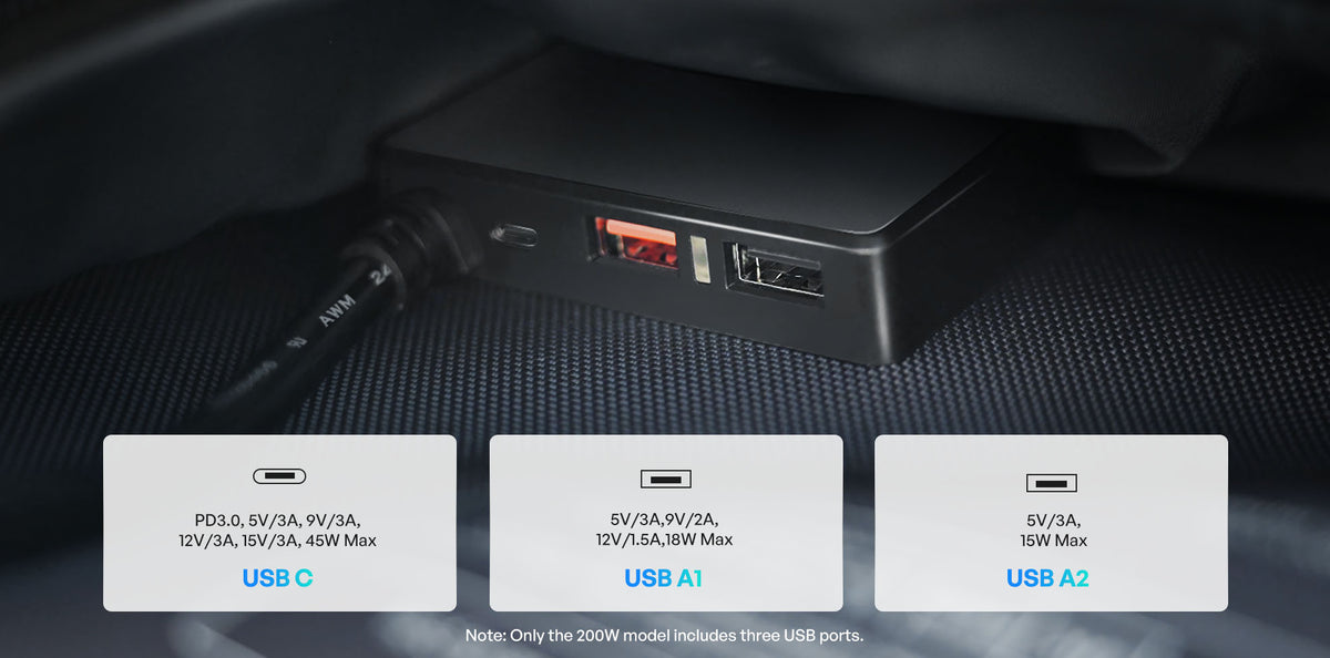 Equipped with 1 USB-C (45W Max) and 2 USB-A (18W Max) ports for flexible charging options.