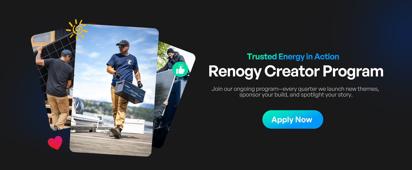 🎯Apply to the Renogy Creator Program — we'll handle the selection, you bring the creativity. This first round is for RVs, vans, campers, off-road vehicles, and similar setups.