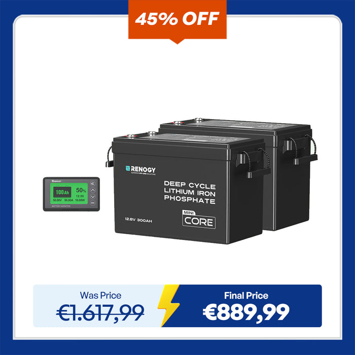 Core - 12V 200Ah Lithium Iron Phosphate Battery w/ Bluetooth - 1 Pack w/ monitor (Save €68)