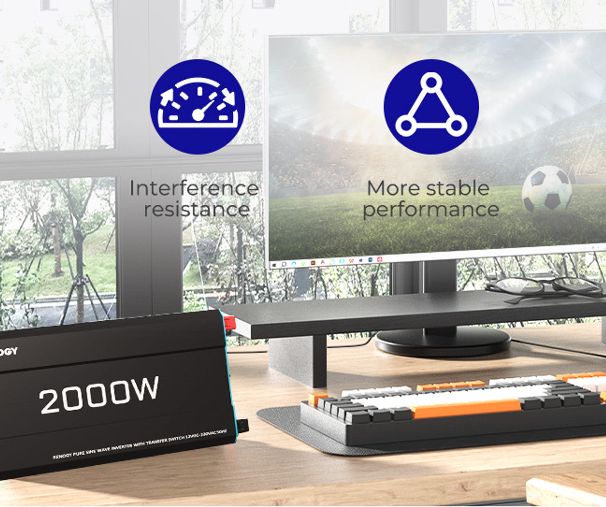 - 【2000W Reliable Pure Sine Wave Power】 Renogy's 12V Pure Sine Wave Inverter delivers clean, stable power with advanced sine wave technology, perfect for sensitive electronics and extending their lifespan.