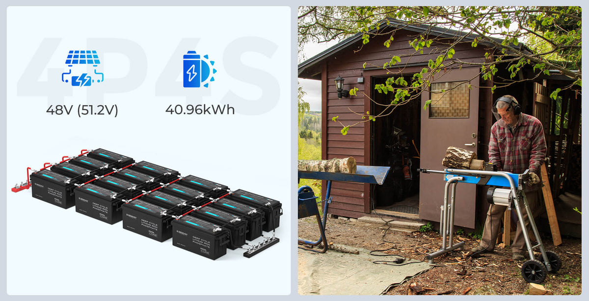 You can connect up to 4 batteries in series, 8 in parallel, or 16 in the series-parallel connection. Batteries of the same model and similar capacity are required.