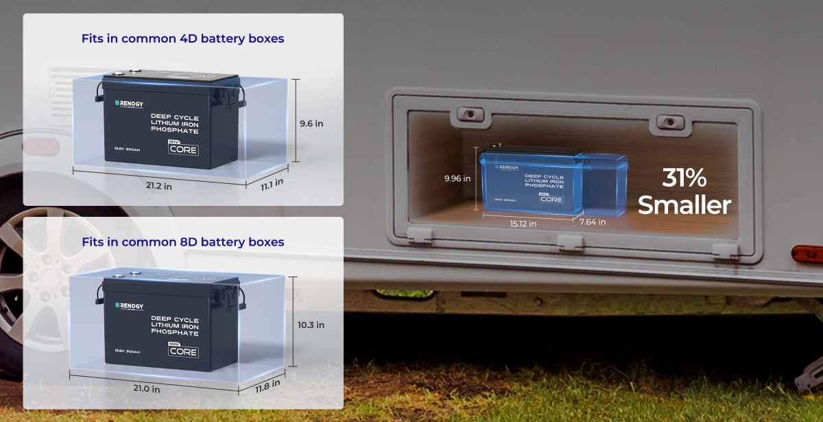 - Compact design, 31% smaller than other 12V 300Ah LFP batteries on the market.