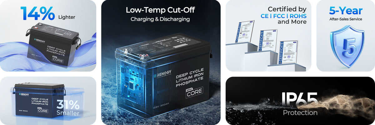 Core LiFePO4 12V Lithium Battery 300AH / 200AH / 100AH - 300AH / Mini / 1 Pack is backordered and will ship as soon as it is back in stock.
