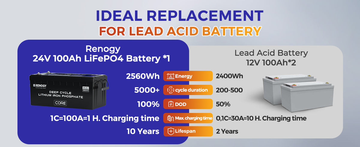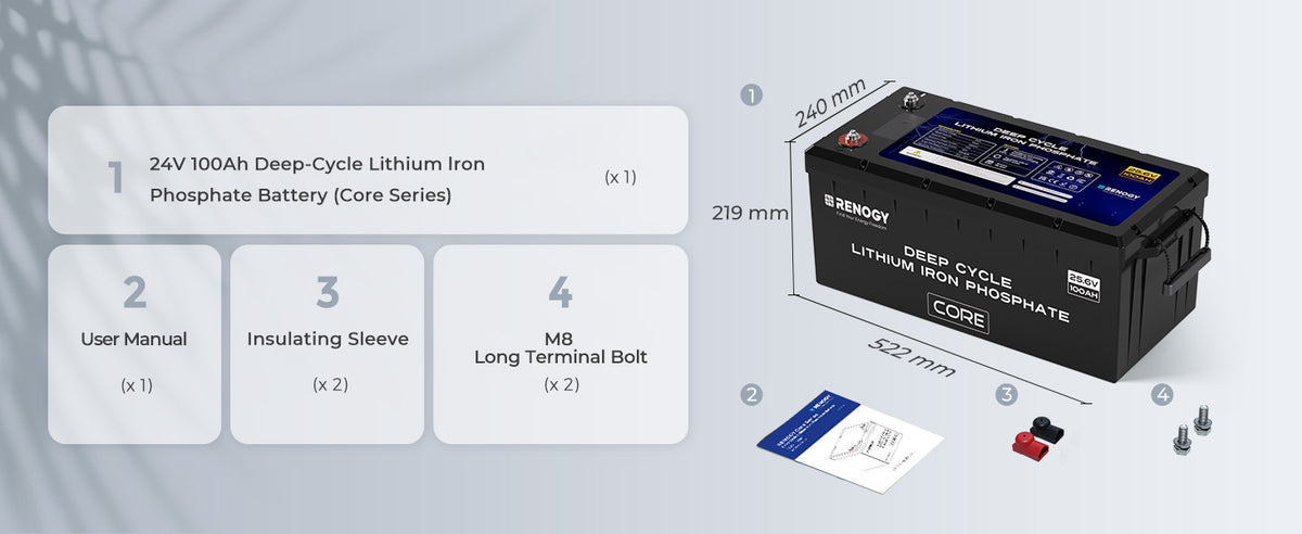 Renogy 24V 100Ah Core Series Deep Cycle Lithium Iron Phosphate Battery