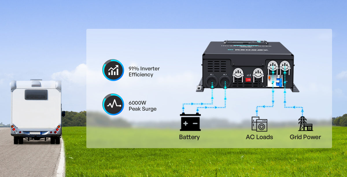 Power your RV on the road and recharge with shore power at camp.