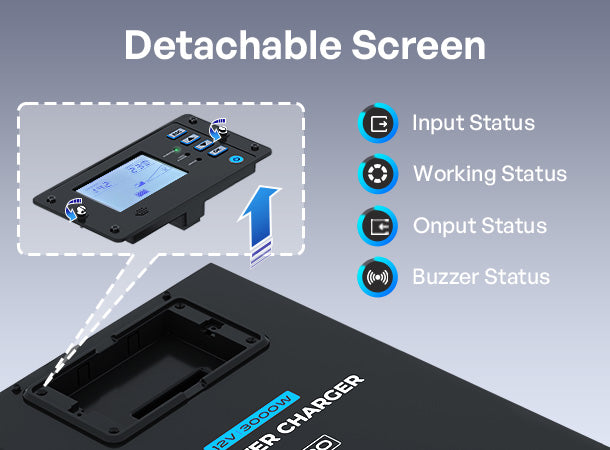 - Supports lithium, lead-acid batteries and AC input with fast switchover
