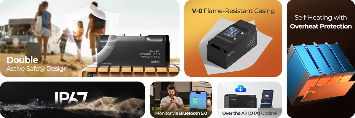 Renogy's safest 12V 200Ah LiFePO4 battery, designed for all-weather use.