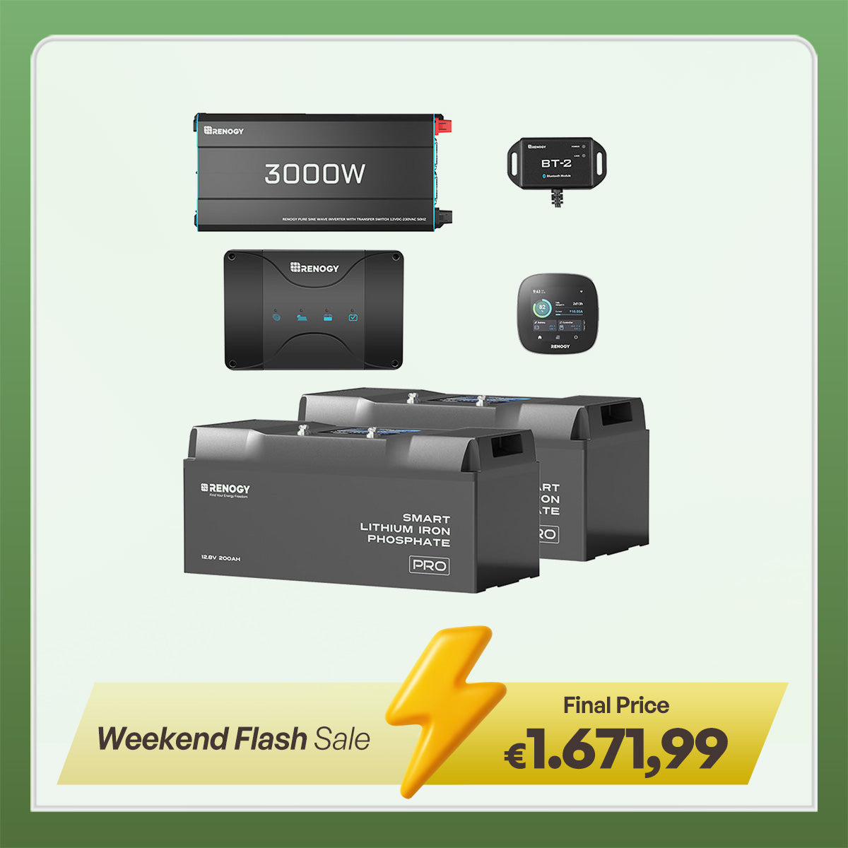 - Substantial 5.12kWh Lithium Power: Featuring two advanced PRO 12.8V 200Ah LiFePO4 batteries, this kit delivers a massive 5.12kWh of reliable, maintenance-free energy, perfect for extended off-grid trips or backup power.