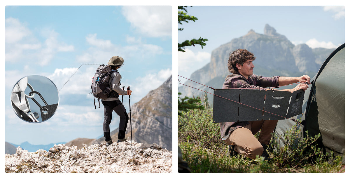 Equipped with 6 metal hanging holes and 4 carabiners which can be easily hung on your backpack or tree, get power for you in fishing, hiking, camping, and other off-grid activities